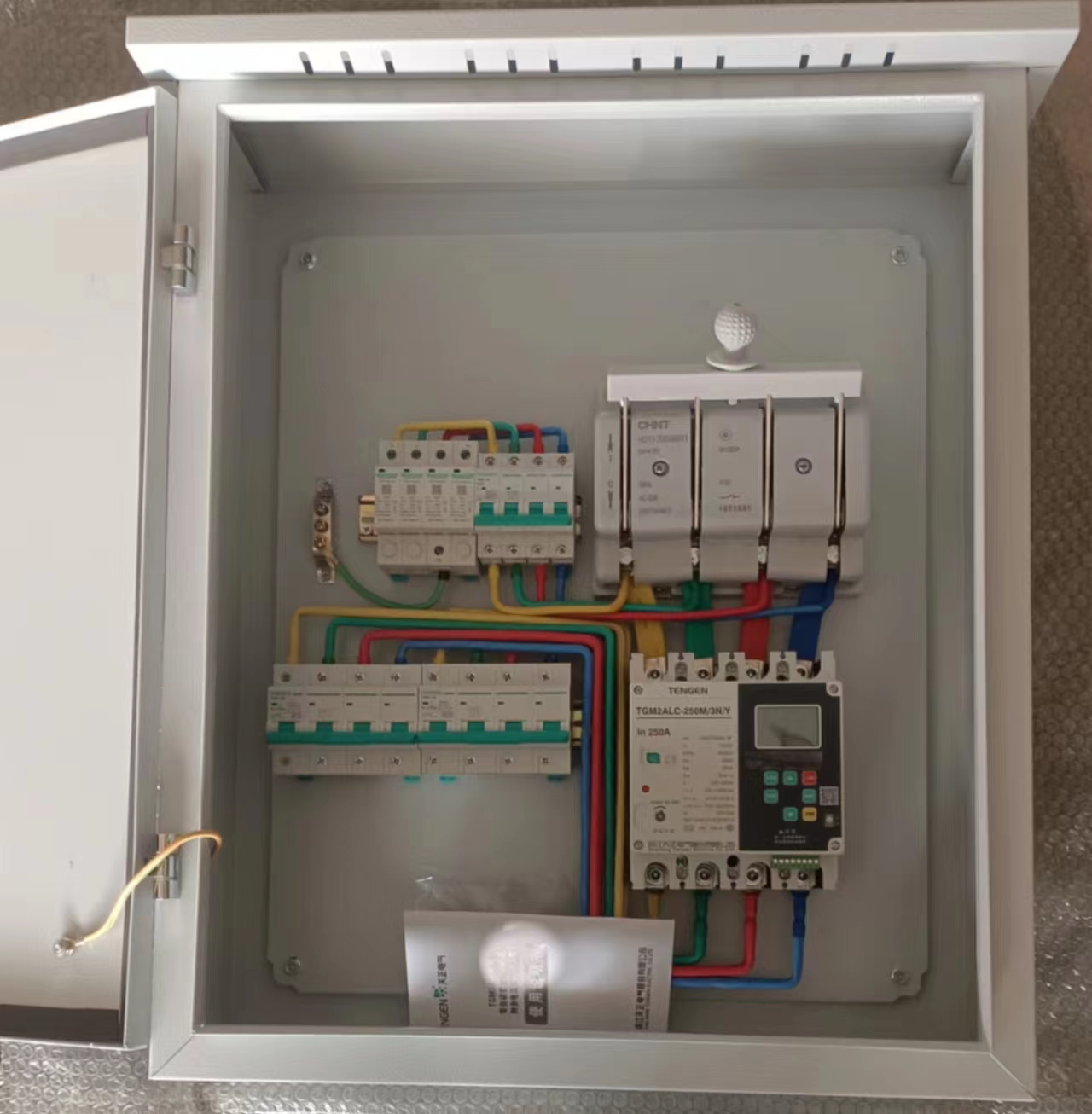 2、線路保護:箱體可對線路過流、短路、漏電保護及電源防雷保護,同時具備自動重合閘功能,對安裝在戶外的并網點,尤其是扶貧項目,大大節省了人工維護工作。