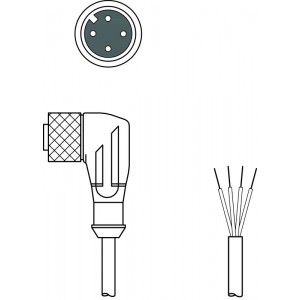 50130690 KD U-M12-4W-V1-050 接頭,M12,L型,母頭 4針 5,000 mm PVC