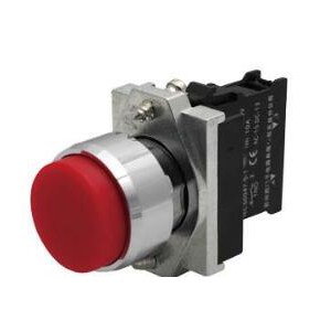 全套裝置組合 22 mm 金屬光澤圓形 按鈕 瞬時 凸起按鈕) 帶支架 螺絲端子,1 個常開觸點 綠色