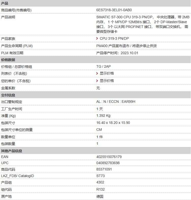 西門子 中央處理器 6ES7318-3EL01-0AB0