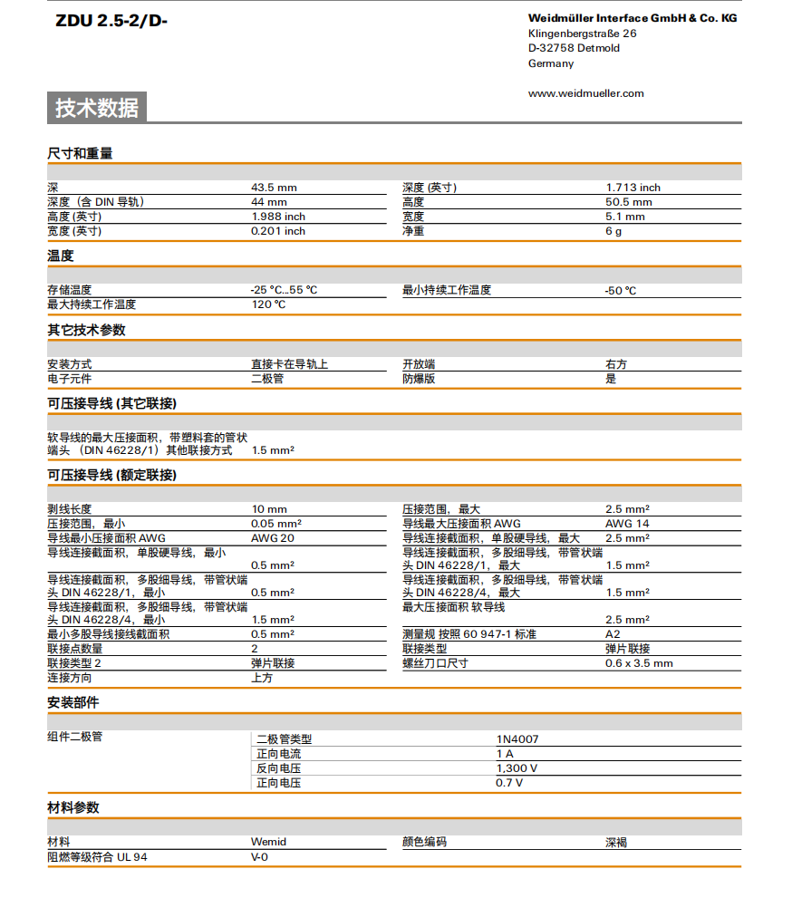 魏德米勒 ZDU 2.5-2/D- 直通型接線端子 訂貨號1779000000 |