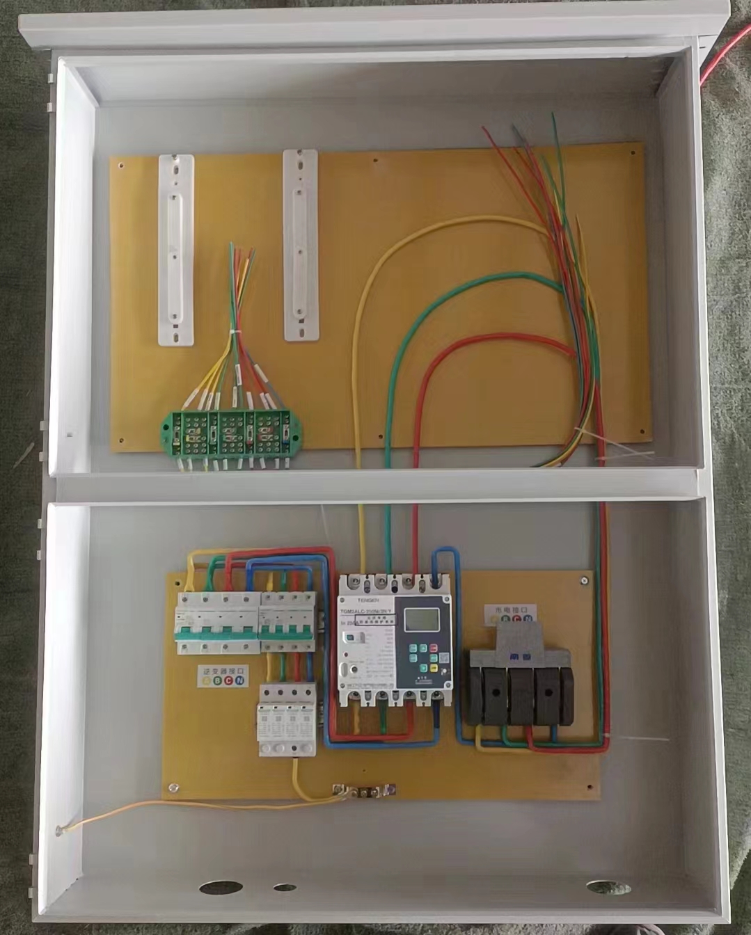 壓光伏并網柜可以加裝計量倉,計量倉帶鉛封裝置,可以有效防止竊電。計量倉內可以安裝計量裝置和負控裝置(一般當地供電局提供),可以很好的記錄發電量情況。