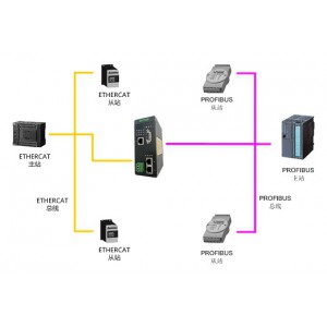 本網(wǎng)關(guān)實(shí)現(xiàn)Profibus-DP轉(zhuǎn) EtherCAT 功能,能夠?qū)崿F(xiàn)Profibus-DP主站PLC的設(shè)備如儀表、變頻器、伺服、綜保、軟啟動器等設(shè)備接入到EtherCAT 網(wǎng)絡(luò)系統(tǒng)。