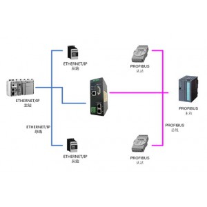 HT3S-EIS-DPS網關連接到Profibus DP總線中作為從站使用,連接到EtherNet/IP總線中作為從站使用。