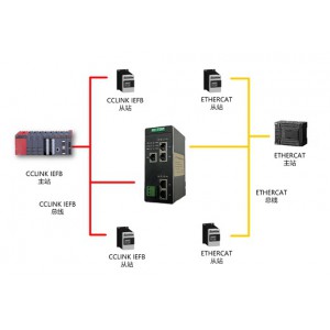 HT3S-ECS-CIS網(wǎng)關(guān)能夠?qū)崿F(xiàn)EtherCAT接口儀表、變頻器、綜保、軟啟動(dòng)器等設(shè)備接入到CC-LINK IE FIELD BASIC網(wǎng)絡(luò)系統(tǒng)。網(wǎng)關(guān)在CC-LINK IE FIELD BASIC一側(cè)是CC-LINK IE 從站,在另一側(cè)支持EtherCAT從站。支持基于EtherCAT的自由協(xié)議通信。