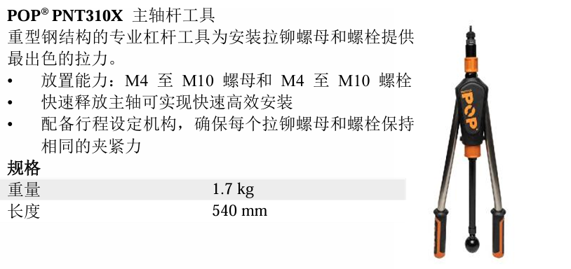 史丹利STANLEY拉鉚螺母手動工具POP® PNT310X 主軸桿工具
