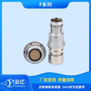 F系列微圓形高密度連接器為分瓣式推入拉出式結構,插合后具有自鎖功能,內部采用半園定位片防止誤 插,另有其行生T系列和C系列,分別有定位銷定位片多 方定位系統,防止相同芯數上的錯誤插拔,同時還具備 盲插功能,使用起來方便快捷。 該系列連接器具有快速插拔、高密度、防水、小體積、盲插及壽命高等特點。特別適合于高密度安裝、相對狹小的空間安裝及使用旋轉方式插合分離困難的場所。能應用于野外惡劣環境,防護等級1P68。 該連接器被廣泛應用于軍、民領域的電臺設備、醫療設備測試設備、音響設備、數據采集、工業控制、航空航天等場合的直流交流電路的電氣連接。