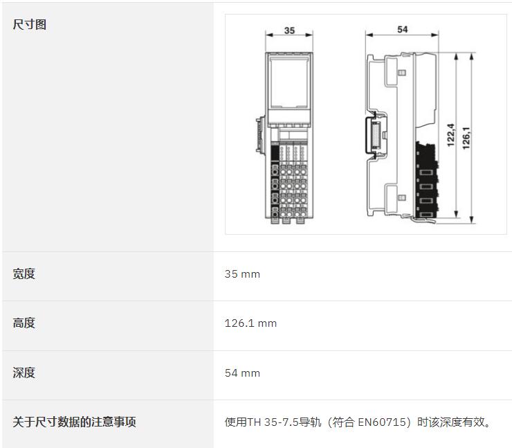 關(guān)于尺寸數(shù)據(jù)的注意事項 使用TH 35-7.5導(dǎo)軌(符合 EN60715)時該深度有效。