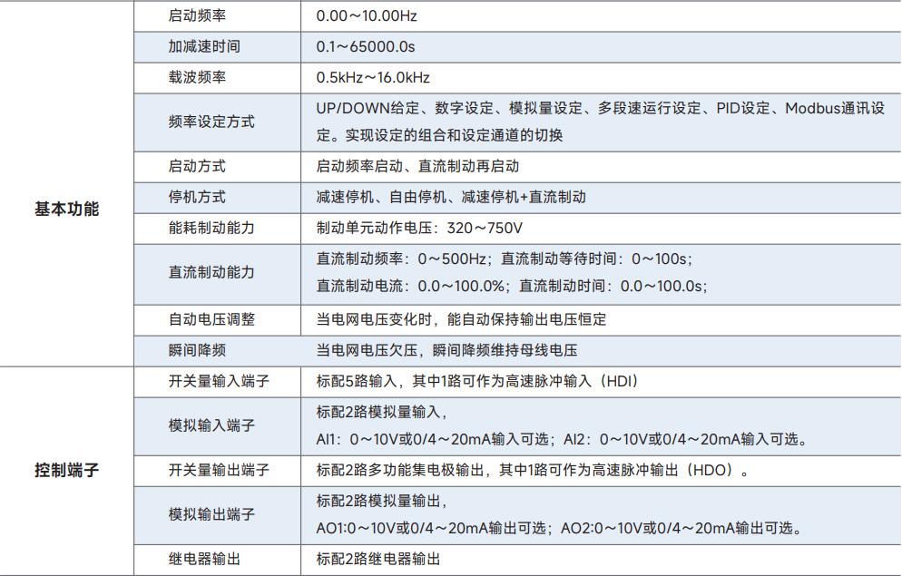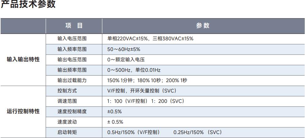 ● V/F 分離控制模式下,輸出頻率和輸出電壓可以分別設定,可適用于變頻電源、力矩電機控制等應用場合。