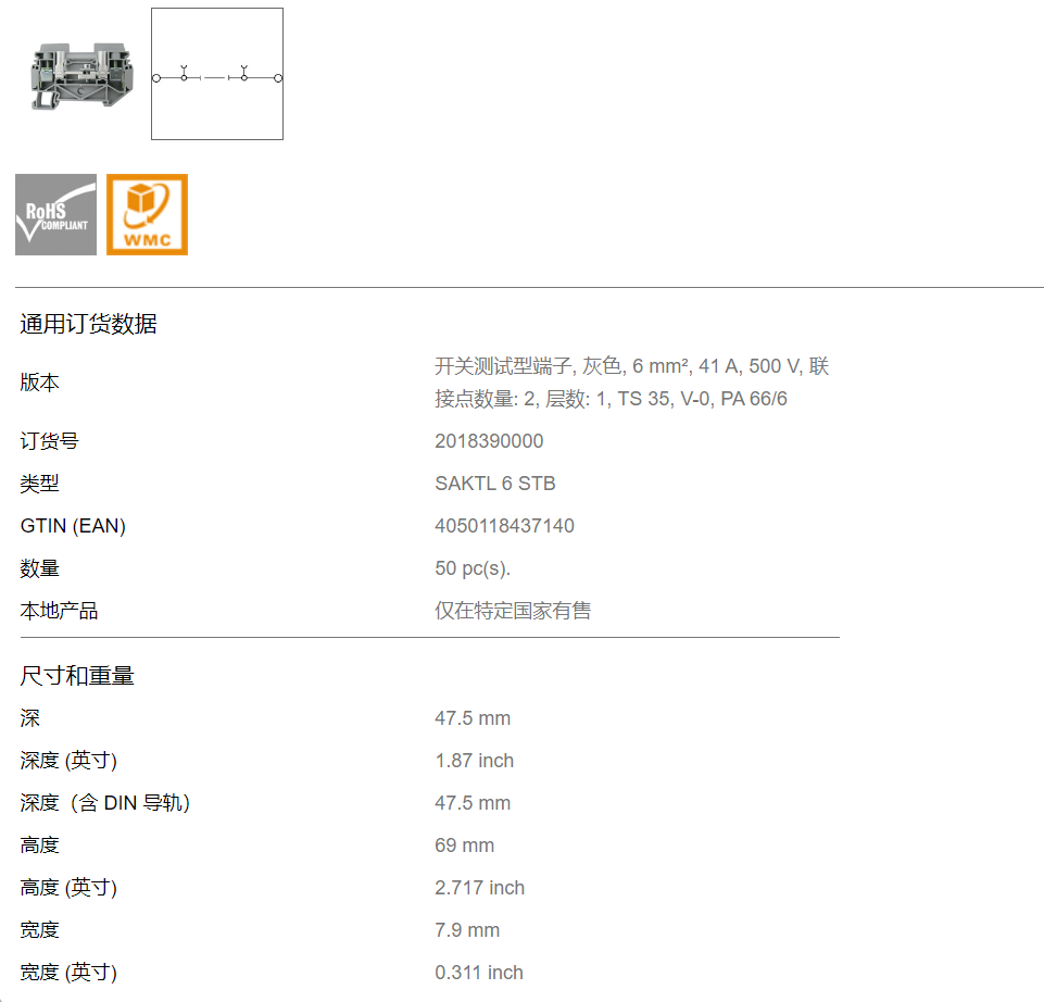 Weidmuller SAKTL 6 STB 魏德米勒 測(cè)試變量器接線端子訂貨號(hào)2018390000