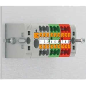 接線板, 底座端子, 標稱工作電壓: 450 V, 額定電流: 24 A, 連接量: 6, 接線方式: 直插式連接, 橫截面: 0.14 mm2 - 4 mm2, 安裝方式: 用于卡接在DIN導軌適配器上, 直接安裝,帶法蘭, 自由懸掛, 顏色: 紅色