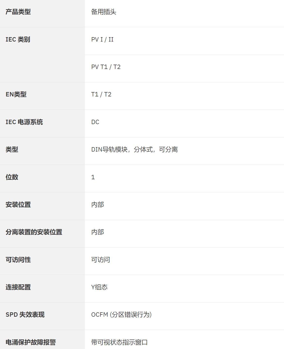 用于VAL-SPP-T1-1000DC-PV-2+V-UT...產品系列PV特殊組合式電涌保護器的備用插頭。