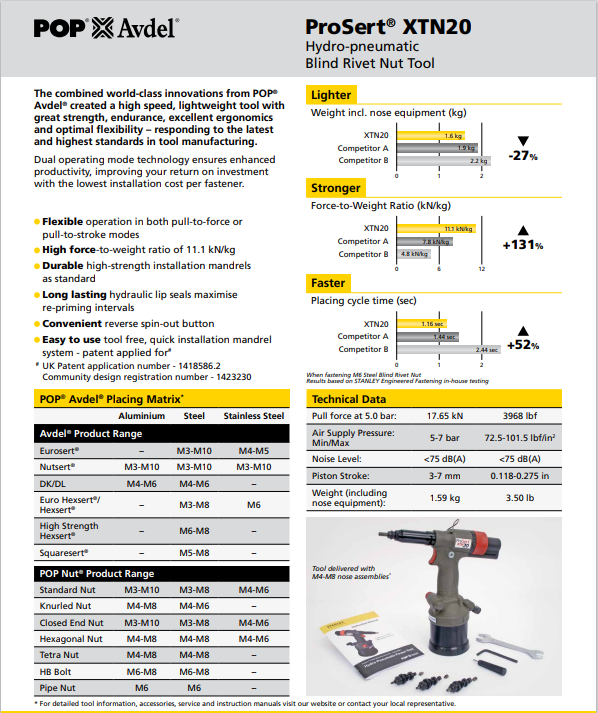 史丹利Stanley工具POP/Avdel  氣動鉚螺母槍ProSert XTN20