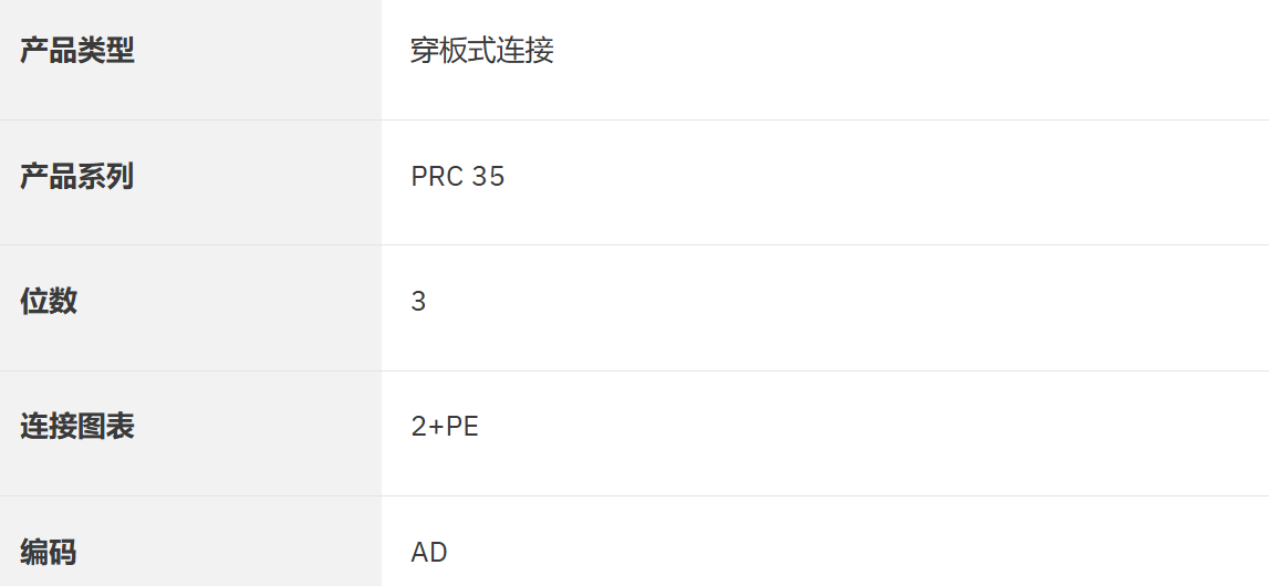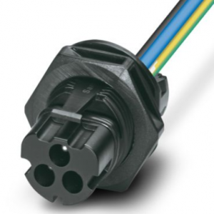 設備連接器 板后安裝, 產品范圍: PRC 35, 外殼材料: PPE, 顏色: 黑色, 位數: 3, ***大導線橫截面: 4 mm2, 額定電壓: 690 V AC, 額定電流: 32 A, 連接方法: 壓接, 觸點類型: 針式插頭, 電纜長度: 150, 該產品也可以提供其他電纜長度。