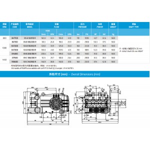 型號描述:VX-B 100/200 R 產(chǎn)品編號:847100 流量:NOM 101.3L/min 26.8GPM 丨98.0L/min 25.9GPM 壓力:200bar 2900psi 功率:37.5kw 重量58.0kg 轉(zhuǎn)速:1000 泵軸:R-右輸入軸直徑為35mm
