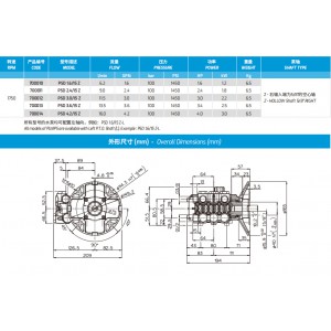 型號描述:PSC 08/15S 產品編號:700042 流量:8.2L/min 2.2GPM 壓力:150bar 2175psi 功率:3.2HP 1.8kw 重量6.1kg 轉速:1450 右輸入軸為24mm