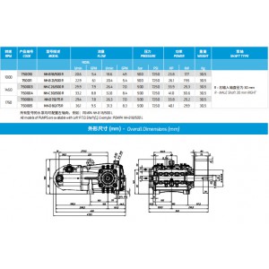 型號描述:NH-D 7.0/75 R 產(chǎn)品編號:750006 流量:NOM 29.4L/min 7.8GPM 丨26.3L/min 7.0GPM 壓力:500bar 7250psi 功率:25.2kw 重量30.5kg 轉(zhuǎn)速:1750泵軸:R-右輸入軸直徑為30mm